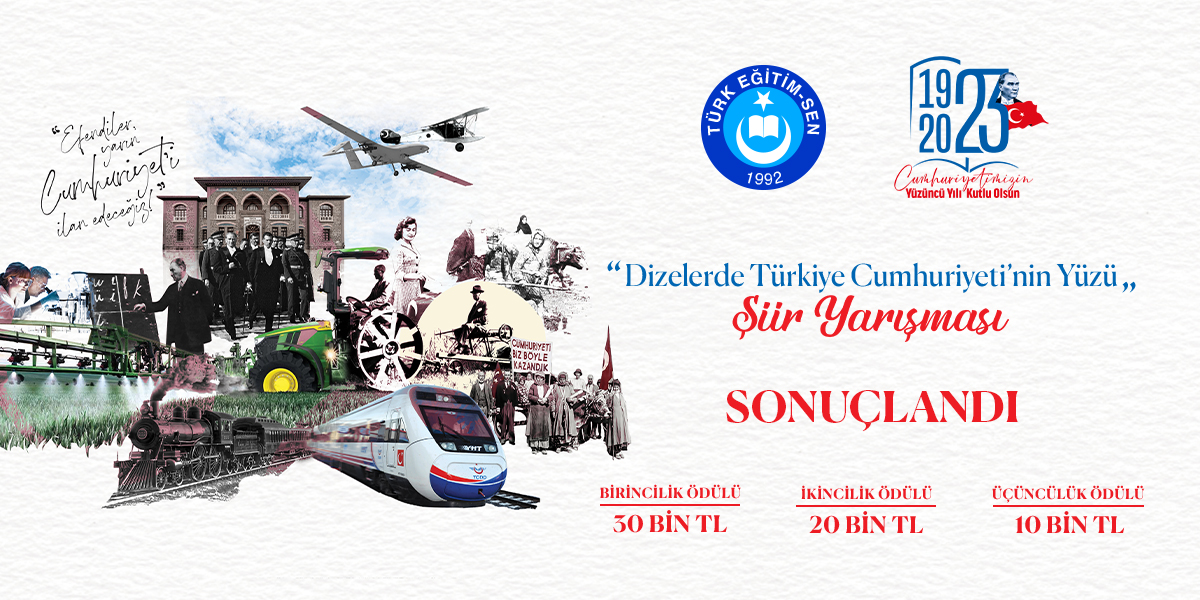 Türk Eğitim-Sen Genel Merkezi olarak yarışmayı kazanan üyelerimizi tebrik ediyor, Türkiye Cumhuriyeti’nin 100. Yılı’nın bütün Türk milletine kutlu olmasını diliyoruz.